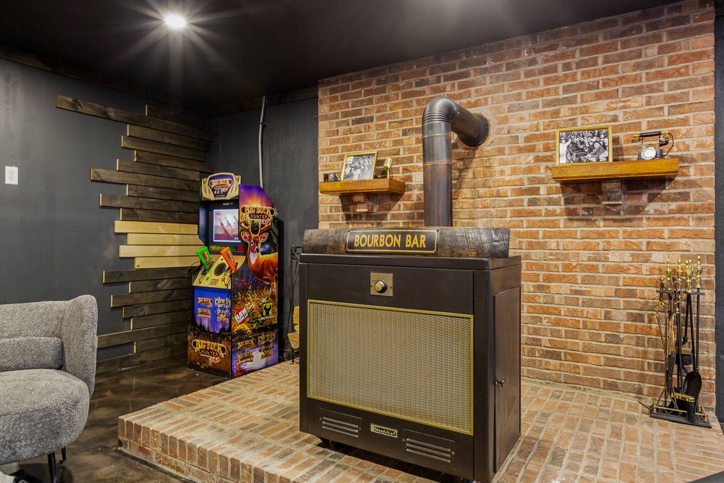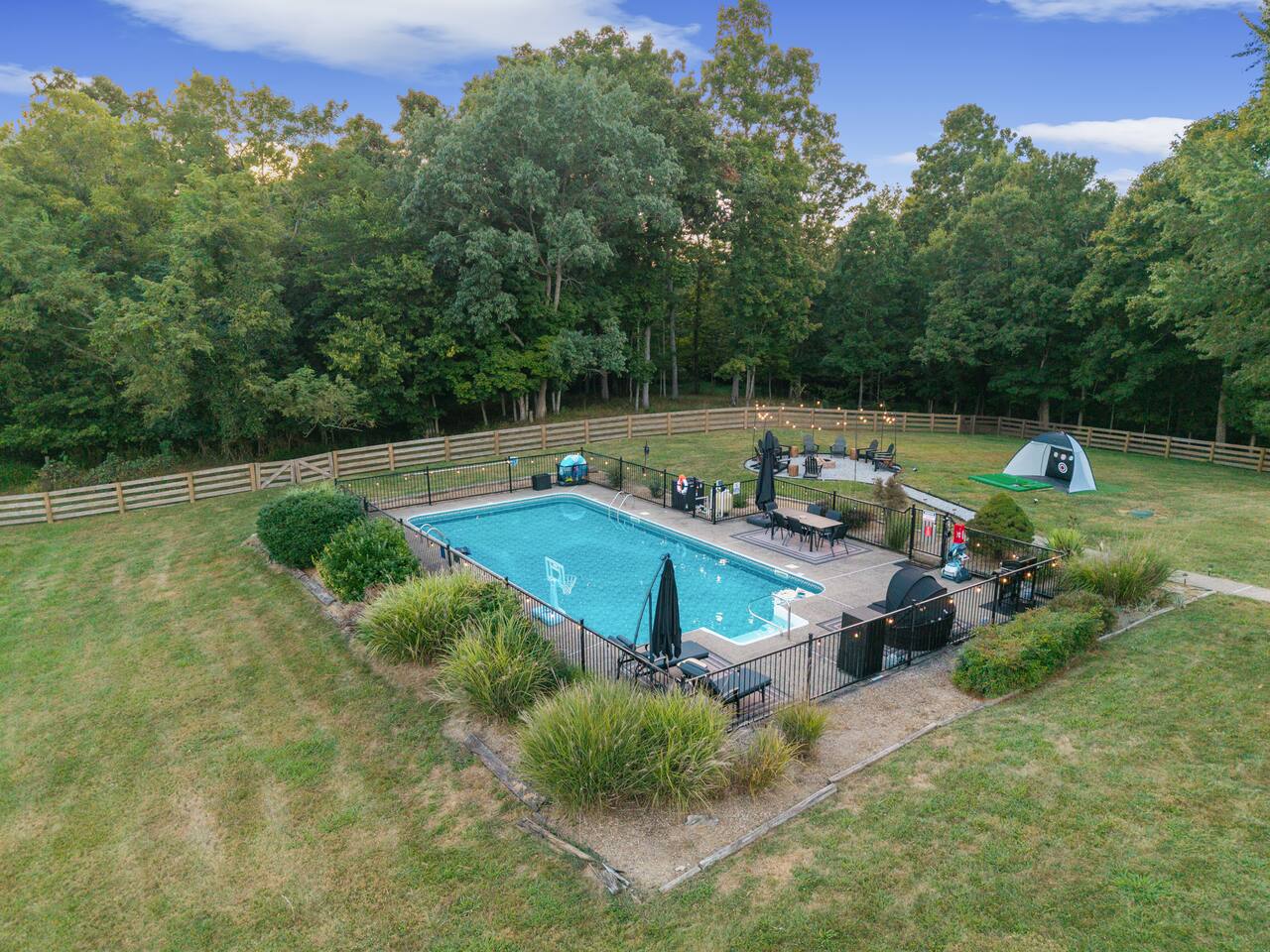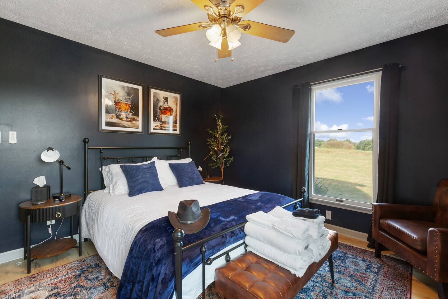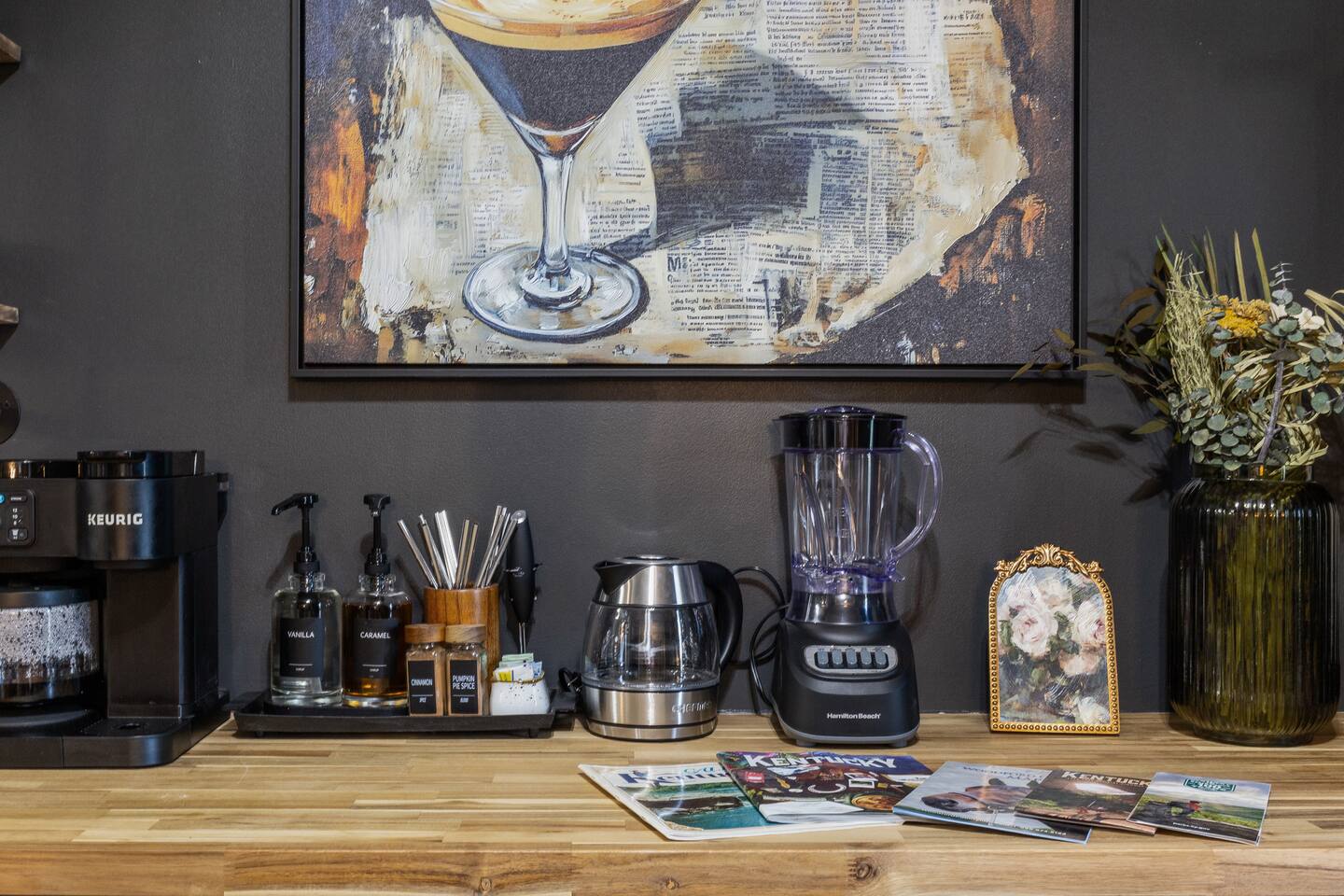 Welcome to Whiskey Business Retreat — your modern Kentucky getaway! ✔ Private 3500 sq ft home on 19 acres ✔ Sleeps 12 ✔ Massive Firepit seats 10 ✔ Covered Hot Tub ✔ In Ground Pool (Seasonal) ✔ Private Speakeasy with BYOB home bar, poker table, billiards, darts, arcade games, & more ✔ Garage Game Room ✔ Close to Buffalo Trace, Whiskey Thief Distilling, & More ✔ Fully Stocked Coffee bar ✔ Dog Friendly Check-in after 3:00pm ET – Check-out before 11:00am ET About The Space: Whiskey Business Retreat is your ideal home base for exploring the Kentucky Bourbon Trail. This spacious vacation rental sleeps up to 12 guests and is designed with comfort and convenience in mind — perfect for families, groups of friends, or bourbon enthusiasts. Enjoy a fully equipped kitchen, family-friendly amenities, and plenty of space to relax after a day of tastings. We’re also dog-friendly, so your four-legged friends can join the adventure. Located just minutes from world-famous distilleries like Buffalo Trace, Whiskey Thief, and more, our retreat combines modern comfort with authentic Kentucky charm. Amenities Guests Love: ➤ Seasonal In-Ground Pool & Covered Hot Tub – Cool off in the pool or unwind year-round in the hot tub, perfectly sheltered for all-weather relaxation. ➤ Private Speakeasy Bar – Mix up the perfect cocktail in our fully stocked bar — just bring the bourbon. ➤ Multiple game tables and over 1000+ classic arcade games ➤ Starter supplies included to make your arrival that much smoother: paper towels, toilet paper, dishwasher pods, laundry pods, shampoo, conditioner, body wash. ➤ Local Insider Guidebook – Explore like a pro with our curated guide to the Bourbon Trail, Buffalo Trace, Whiskey Thief, and local attractions. ➤ Massive Outdoor Firepit – Gather around our 10-seat firepit with friends and family under the Kentucky night sky. ➤ Propane grill with propane included. Front Porch ➤ Relax in the classic rocking chairs on the spacious front porch while enjoying your morning coffee or an evening cocktail. ➤ The porch offers peaceful views of rolling Kentucky fields and farmland, creating the perfect serene backdrop. Kitchen and Dining ➤ Fully Stocked Kitchen – Includes essentials for cooking and baking, even a crock pot, blender, air fryer, waffle maker, and more, plus silverware and dishware for the entire group. ➤ Coffee Bar – Keurig Duo, coffee grounds, K-cups, creamer, sugar, and more for easy mornings. ➤ Dining Table & Seating – Main table seats 10, with 4 additional seats at the breakfast bar and casual seating on the bay window bench. ➤ Starter Supplies – Paper towels, dishwasher pods, sponges, olive oil, and spices are ready for your arrival. ➤ Filtered Water Pitcher – Clean, chilled water available in the fridge. ➤ S’mores & Grill Fun – S’mores sticks and grill utensils included for outdoor cooking adventures. Living Room ➤ Seating for your whole group. ➤ Cozy space with electric fireplace. ➤ 75" Smart TV to log into your own streaming services. ➤ Plenty of games you and your loved ones will enjoy. Speakeasy ➤ Private BYOB Speakeasy with pool table, 10-person poker table, lounge area, and a massage chair for ultimate relaxation. ➤ Fully stocked home bar: mini fridge, ice maker, and all the barware you need to mix your favorite drinks, including a whiskey smoker to make the perfect smoked Old Fashioned. ➤ Arcade fun: Buck Hunter and a 4-person gaming console with over 1,000 classic arcade games! ➤ 2 dart boards for friendly competition. Garage Game Room ➤ Pop-a-Shot, Air Hockey, and a Ping Pong Table Outdoor Space ➤ Seasonal In-Ground Pool ➤ Massive firepit with seating for 10 ➤ Covered 5-person Hot Tub on back patio with seating ➤ 2 acres of fenced yard ➤ Adjustable Goalrilla Basketball Hoop in the driveway ➤ Golf Hitting Net ➤ Propane Grill with Propane Tank included ➤ Al Fresco Dining, chaise lounge chairs, and a daybed to relax on ➤ Pickleball Court ➤ Yard Games like bucket golf, lawn darts, cornhole, and more! Sleeping Accommodations & Bathrooms: Every bedroom comes ready for your stay with luggage racks, laundry baskets, hangers, and shelves for easy organization. Bathrooms are stocked with shampoo, conditioner, body wash, toilet paper, makeup towels, and hairdryers—and if you forget something, check the drawers; we’ve likely got you covered! Primary Suite ➤ Comfortable King bed with the loved Helix Hospitality mattress ➤ Soft sheets and comfy pillows ➤ Extra blankets ➤ Room darkening curtains that keep the room dark as needed ➤ 65-inch Smart TV and electric fireplace ➤ Mini Coffee Bar ➤ En Suite with large walk-in shower and large vanity Guest Bedrooms #1 & #2 ➤ Each has Queen Beds with Helix Hospitality mattresses ➤ Soft sheets and comfy pillows ➤ Extra throw blankets available ➤ 55” Smart TVs ➤ Room darkening curtains that keep the room dark as needed ➤ Bedroom #2 also has a workspace, perfect for catching up on work Guest Bedroom #4 (Basement) ➤ Two king beds featuring the loved Helix Hospitality mattress ➤ Soft sheets and comfy pillows ➤ Extra throw blankets available ➤ Room darkening curtains that keep the room dark as needed ➤ 75” Smart TV and electric fireplace Extra Sleeping Space: The living room can accommodate up to 2 additional guests on the provided queen air mattress. Extra Sleeping Space for Dogs: The master closet has 2 dog beds for your furry companions to enjoy. Extra Sleeping Space for Infants/Toddlers: The master closet has a pack n play stored inside. We recommend bringing your own sheets. Bathrooms ➤ Master En-Suite Bathroom – Large vanity and walk-in shower with all toiletries provided. ➤ Upstairs Hall Bathroom – Large vanity, shower/soaking-tub combo, full toiletries, plus bath salts and bath bombs for a relaxing soak. ➤ Basement Bathroom – Updated vanity and walk-in shower with all es