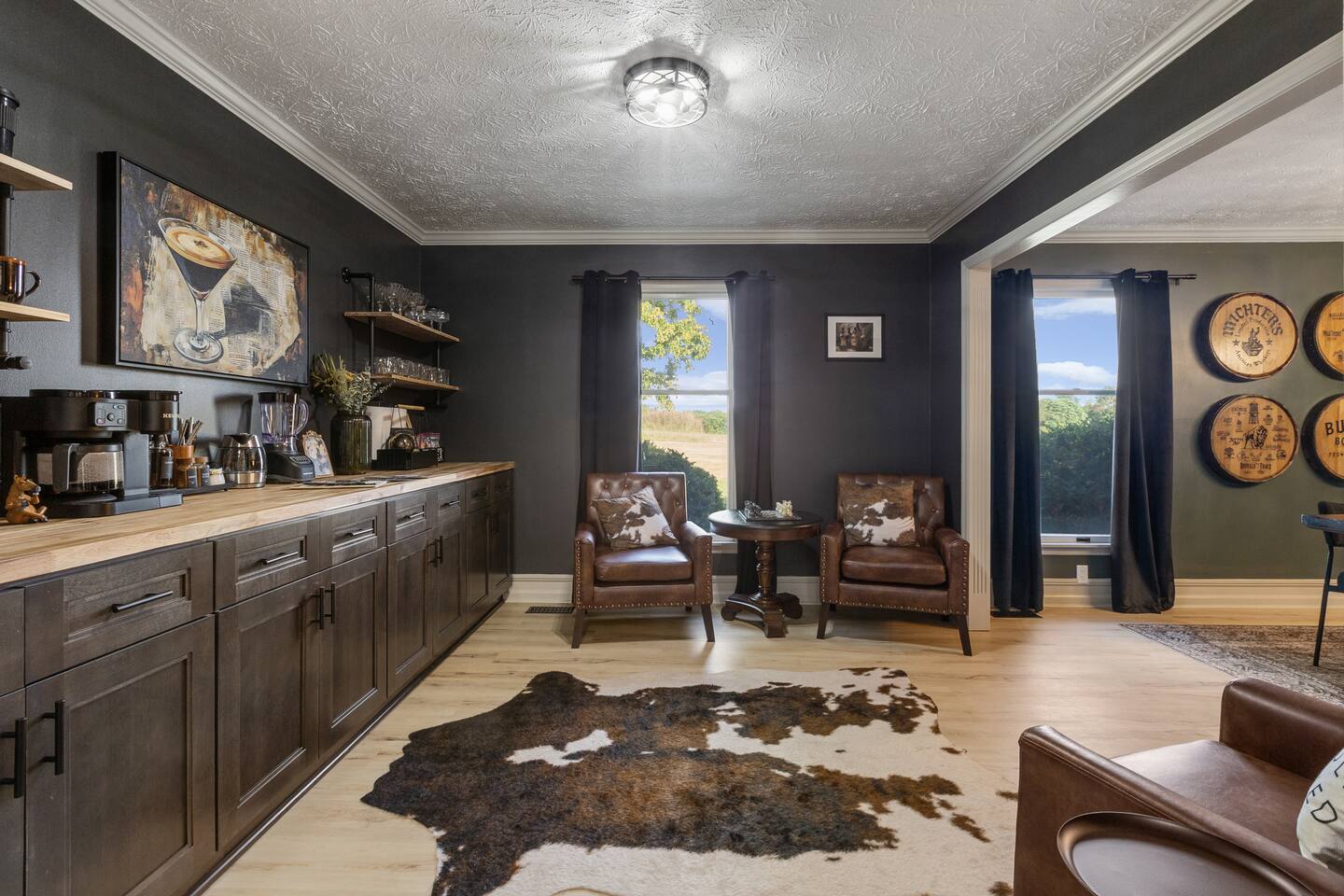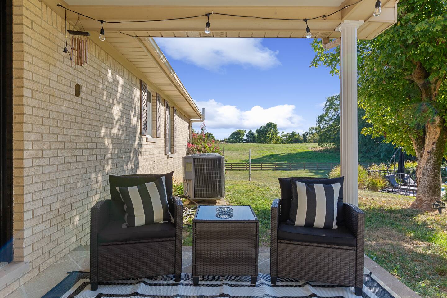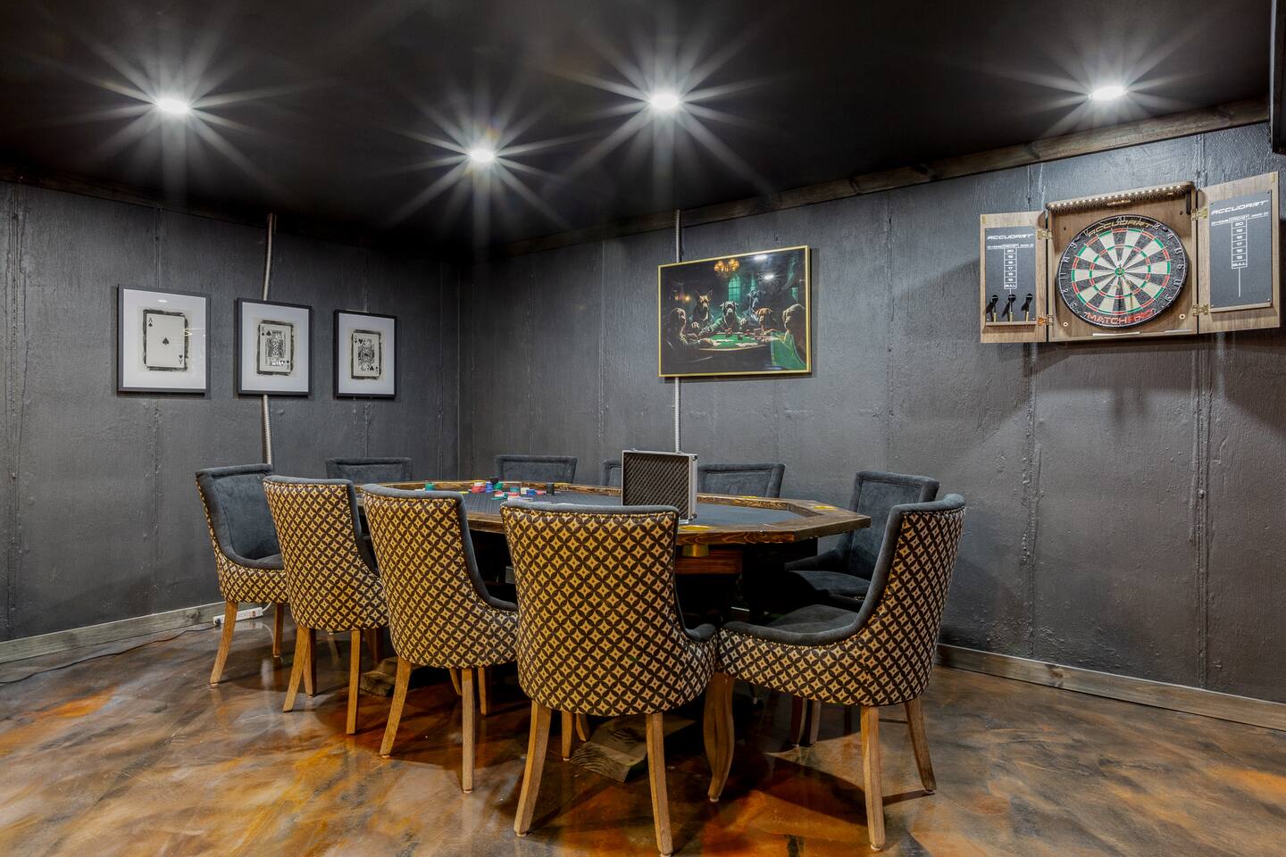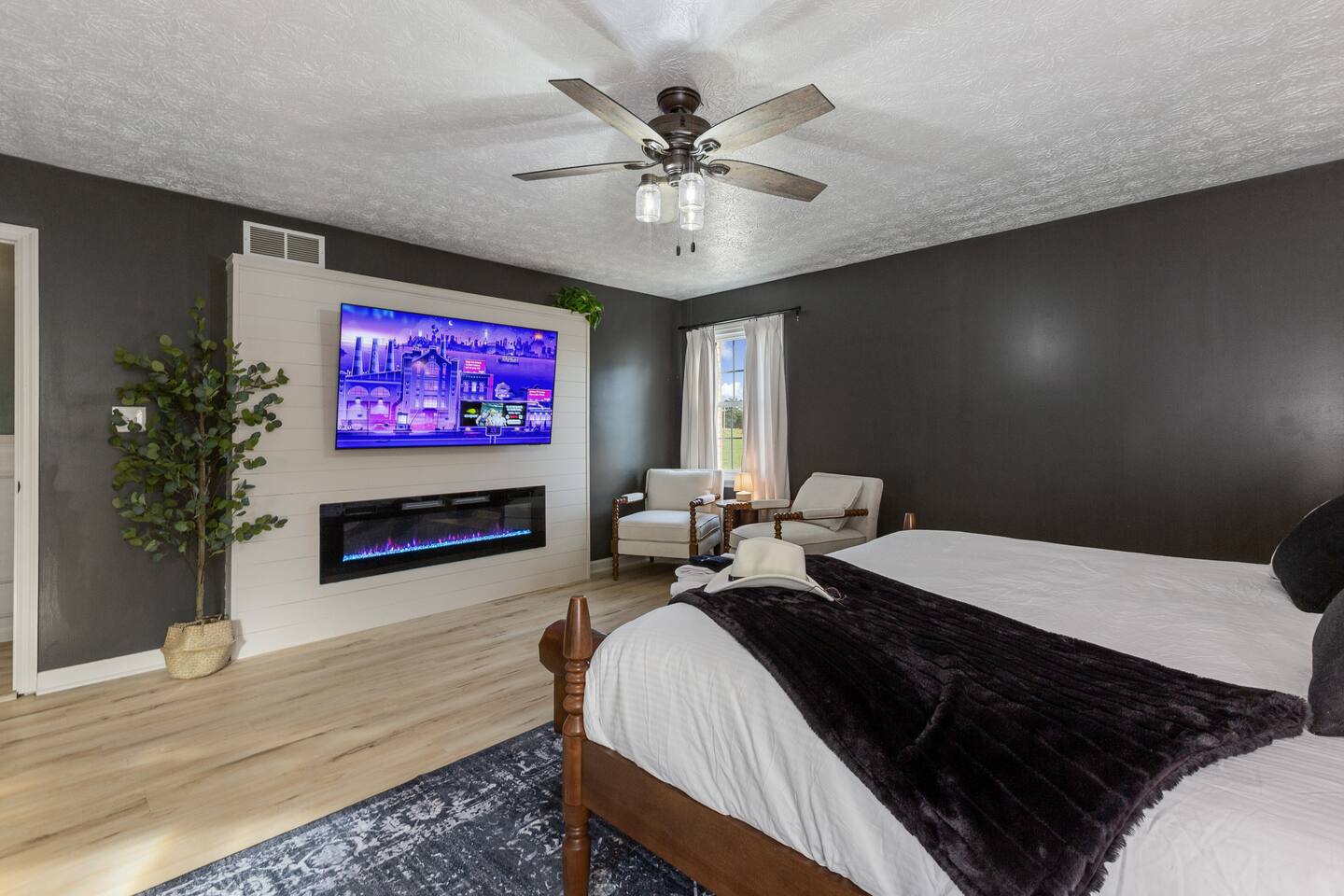 Welcome to Whiskey Business Retreat — your modern Kentucky getaway! ✔ Private 3500 sq ft home on 19 acres ✔ Sleeps 12 ✔ Massive Firepit seats 10 ✔ Covered Hot Tub ✔ In Ground Pool (Seasonal) ✔ Private Speakeasy with BYOB home bar, poker table, billiards, darts, arcade games, & more ✔ Garage Game Room ✔ Close to Buffalo Trace, Whiskey Thief Distilling, & More ✔ Fully Stocked Coffee bar ✔ Dog Friendly Check-in after 3:00pm ET – Check-out before 11:00am ET About The Space: Whiskey Business Retreat is your ideal home base for exploring the Kentucky Bourbon Trail. This spacious vacation rental sleeps up to 12 guests and is designed with comfort and convenience in mind — perfect for families, groups of friends, or bourbon enthusiasts. Enjoy a fully equipped kitchen, family-friendly amenities, and plenty of space to relax after a day of tastings. We’re also dog-friendly, so your four-legged friends can join the adventure. Located just minutes from world-famous distilleries like Buffalo Trace, Whiskey Thief, and more, our retreat combines modern comfort with authentic Kentucky charm. Amenities Guests Love: ➤ Seasonal In-Ground Pool & Covered Hot Tub – Cool off in the pool or unwind year-round in the hot tub, perfectly sheltered for all-weather relaxation. ➤ Private Speakeasy Bar – Mix up the perfect cocktail in our fully stocked bar — just bring the bourbon. ➤ Multiple game tables and over 1000+ classic arcade games ➤ Starter supplies included to make your arrival that much smoother: paper towels, toilet paper, dishwasher pods, laundry pods, shampoo, conditioner, body wash. ➤ Local Insider Guidebook – Explore like a pro with our curated guide to the Bourbon Trail, Buffalo Trace, Whiskey Thief, and local attractions. ➤ Massive Outdoor Firepit – Gather around our 10-seat firepit with friends and family under the Kentucky night sky. ➤ Propane grill with propane included. Front Porch ➤ Relax in the classic rocking chairs on the spacious front porch while enjoying your morning coffee or an evening cocktail. ➤ The porch offers peaceful views of rolling Kentucky fields and farmland, creating the perfect serene backdrop. Kitchen and Dining ➤ Fully Stocked Kitchen – Includes essentials for cooking and baking, even a crock pot, blender, air fryer, waffle maker, and more, plus silverware and dishware for the entire group. ➤ Coffee Bar – Keurig Duo, coffee grounds, K-cups, creamer, sugar, and more for easy mornings. ➤ Dining Table & Seating – Main table seats 10, with 4 additional seats at the breakfast bar and casual seating on the bay window bench. ➤ Starter Supplies – Paper towels, dishwasher pods, sponges, olive oil, and spices are ready for your arrival. ➤ Filtered Water Pitcher – Clean, chilled water available in the fridge. ➤ S’mores & Grill Fun – S’mores sticks and grill utensils included for outdoor cooking adventures. Living Room ➤ Seating for your whole group. ➤ Cozy space with electric fireplace. ➤ 75" Smart TV to log into your own streaming services. ➤ Plenty of games you and your loved ones will enjoy. Speakeasy ➤ Private BYOB Speakeasy with pool table, 10-person poker table, lounge area, and a massage chair for ultimate relaxation. ➤ Fully stocked home bar: mini fridge, ice maker, and all the barware you need to mix your favorite drinks, including a whiskey smoker to make the perfect smoked Old Fashioned. ➤ Arcade fun: Buck Hunter and a 4-person gaming console with over 1,000 classic arcade games! ➤ 2 dart boards for friendly competition. Garage Game Room ➤ Pop-a-Shot, Air Hockey, and a Ping Pong Table Outdoor Space ➤ Seasonal In-Ground Pool ➤ Massive firepit with seating for 10 ➤ Covered 5-person Hot Tub on back patio with seating ➤ 2 acres of fenced yard ➤ Adjustable Goalrilla Basketball Hoop in the driveway ➤ Golf Hitting Net ➤ Propane Grill with Propane Tank included ➤ Al Fresco Dining, chaise lounge chairs, and a daybed to relax on ➤ Pickleball Court ➤ Yard Games like bucket golf, lawn darts, cornhole, and more! Sleeping Accommodations & Bathrooms: Every bedroom comes ready for your stay with luggage racks, laundry baskets, hangers, and shelves for easy organization. Bathrooms are stocked with shampoo, conditioner, body wash, toilet paper, makeup towels, and hairdryers—and if you forget something, check the drawers; we’ve likely got you covered! Primary Suite ➤ Comfortable King bed with the loved Helix Hospitality mattress ➤ Soft sheets and comfy pillows ➤ Extra blankets ➤ Room darkening curtains that keep the room dark as needed ➤ 65-inch Smart TV and electric fireplace ➤ Mini Coffee Bar ➤ En Suite with large walk-in shower and large vanity Guest Bedrooms #1 & #2 ➤ Each has Queen Beds with Helix Hospitality mattresses ➤ Soft sheets and comfy pillows ➤ Extra throw blankets available ➤ 55” Smart TVs ➤ Room darkening curtains that keep the room dark as needed ➤ Bedroom #2 also has a workspace, perfect for catching up on work Guest Bedroom #4 (Basement) ➤ Two king beds featuring the loved Helix Hospitality mattress ➤ Soft sheets and comfy pillows ➤ Extra throw blankets available ➤ Room darkening curtains that keep the room dark as needed ➤ 75” Smart TV and electric fireplace Extra Sleeping Space: The living room can accommodate up to 2 additional guests on the provided queen air mattress. Extra Sleeping Space for Dogs: The master closet has 2 dog beds for your furry companions to enjoy. Extra Sleeping Space for Infants/Toddlers: The master closet has a pack n play stored inside. We recommend bringing your own sheets. Bathrooms ➤ Master En-Suite Bathroom – Large vanity and walk-in shower with all toiletries provided. ➤ Upstairs Hall Bathroom – Large vanity, shower/soaking-tub combo, full toiletries, plus bath salts and bath bombs for a relaxing soak. ➤ Basement Bathroom – Updated vanity and walk-in shower with all es