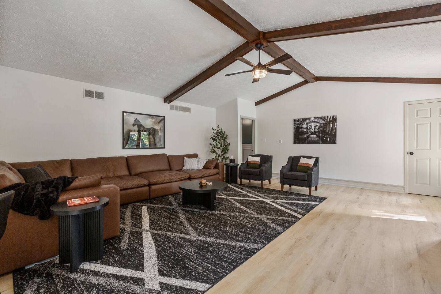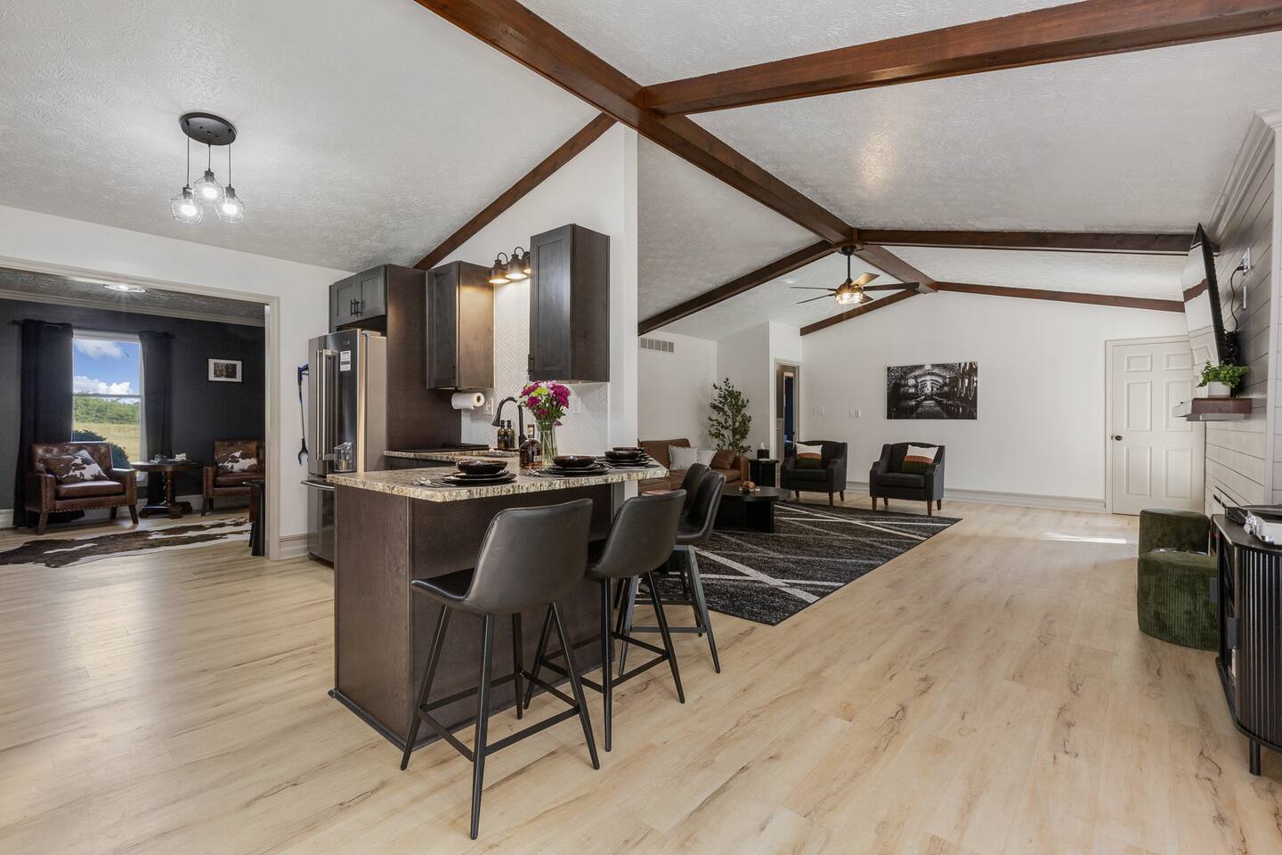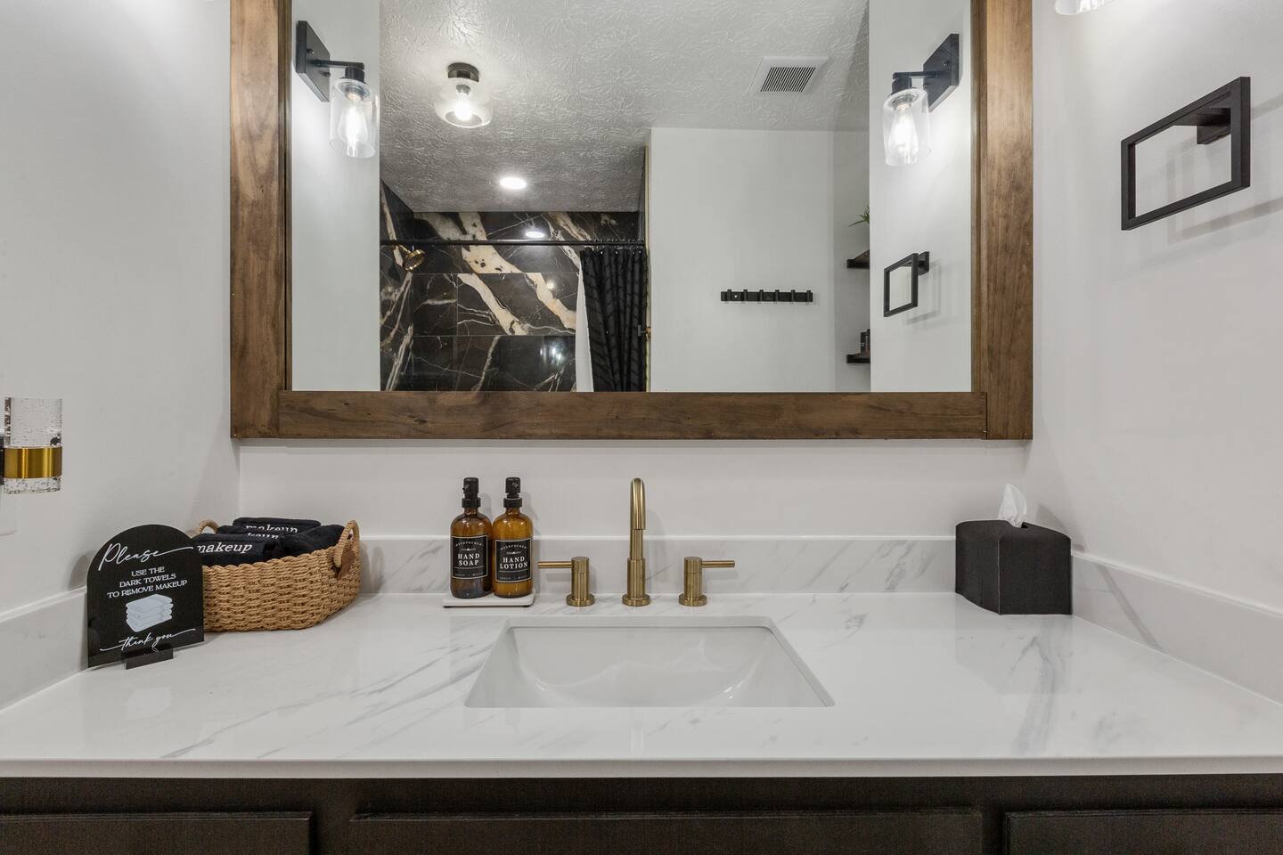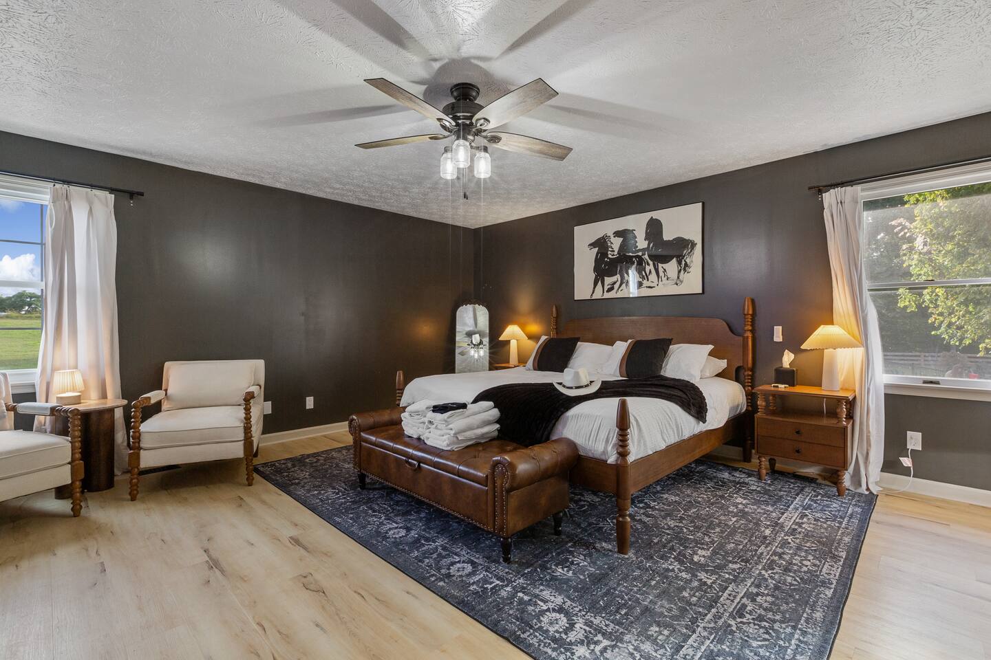 Welcome to Whiskey Business Retreat — your modern Kentucky getaway! ✔ Private 3500 sq ft home on 19 acres ✔ Sleeps 12 ✔ Massive Firepit seats 10 ✔ Covered Hot Tub ✔ In Ground Pool (Seasonal) ✔ Private Speakeasy with BYOB home bar, poker table, billiards, darts, arcade games, & more ✔ Garage Game Room ✔ Close to Buffalo Trace, Whiskey Thief Distilling, & More ✔ Fully Stocked Coffee bar ✔ Dog Friendly Check-in after 3:00pm ET – Check-out before 11:00am ET About The Space: Whiskey Business Retreat is your ideal home base for exploring the Kentucky Bourbon Trail. This spacious vacation rental sleeps up to 12 guests and is designed with comfort and convenience in mind — perfect for families, groups of friends, or bourbon enthusiasts. Enjoy a fully equipped kitchen, family-friendly amenities, and plenty of space to relax after a day of tastings. We’re also dog-friendly, so your four-legged friends can join the adventure. Located just minutes from world-famous distilleries like Buffalo Trace, Whiskey Thief, and more, our retreat combines modern comfort with authentic Kentucky charm. Amenities Guests Love: ➤ Seasonal In-Ground Pool & Covered Hot Tub – Cool off in the pool or unwind year-round in the hot tub, perfectly sheltered for all-weather relaxation. ➤ Private Speakeasy Bar – Mix up the perfect cocktail in our fully stocked bar — just bring the bourbon. ➤ Multiple game tables and over 1000+ classic arcade games ➤ Starter supplies included to make your arrival that much smoother: paper towels, toilet paper, dishwasher pods, laundry pods, shampoo, conditioner, body wash. ➤ Local Insider Guidebook – Explore like a pro with our curated guide to the Bourbon Trail, Buffalo Trace, Whiskey Thief, and local attractions. ➤ Massive Outdoor Firepit – Gather around our 10-seat firepit with friends and family under the Kentucky night sky. ➤ Propane grill with propane included. Front Porch ➤ Relax in the classic rocking chairs on the spacious front porch while enjoying your morning coffee or an evening cocktail. ➤ The porch offers peaceful views of rolling Kentucky fields and farmland, creating the perfect serene backdrop. Kitchen and Dining ➤ Fully Stocked Kitchen – Includes essentials for cooking and baking, even a crock pot, blender, air fryer, waffle maker, and more, plus silverware and dishware for the entire group. ➤ Coffee Bar – Keurig Duo, coffee grounds, K-cups, creamer, sugar, and more for easy mornings. ➤ Dining Table & Seating – Main table seats 10, with 4 additional seats at the breakfast bar and casual seating on the bay window bench. ➤ Starter Supplies – Paper towels, dishwasher pods, sponges, olive oil, and spices are ready for your arrival. ➤ Filtered Water Pitcher – Clean, chilled water available in the fridge. ➤ S’mores & Grill Fun – S’mores sticks and grill utensils included for outdoor cooking adventures. Living Room ➤ Seating for your whole group. ➤ Cozy space with electric fireplace. ➤ 75" Smart TV to log into your own streaming services. ➤ Plenty of games you and your loved ones will enjoy. Speakeasy ➤ Private BYOB Speakeasy with pool table, 10-person poker table, lounge area, and a massage chair for ultimate relaxation. ➤ Fully stocked home bar: mini fridge, ice maker, and all the barware you need to mix your favorite drinks, including a whiskey smoker to make the perfect smoked Old Fashioned. ➤ Arcade fun: Buck Hunter and a 4-person gaming console with over 1,000 classic arcade games! ➤ 2 dart boards for friendly competition. Garage Game Room ➤ Pop-a-Shot, Air Hockey, and a Ping Pong Table Outdoor Space ➤ Seasonal In-Ground Pool ➤ Massive firepit with seating for 10 ➤ Covered 5-person Hot Tub on back patio with seating ➤ 2 acres of fenced yard ➤ Adjustable Goalrilla Basketball Hoop in the driveway ➤ Golf Hitting Net ➤ Propane Grill with Propane Tank included ➤ Al Fresco Dining, chaise lounge chairs, and a daybed to relax on ➤ Pickleball Court ➤ Yard Games like bucket golf, lawn darts, cornhole, and more! Sleeping Accommodations & Bathrooms: Every bedroom comes ready for your stay with luggage racks, laundry baskets, hangers, and shelves for easy organization. Bathrooms are stocked with shampoo, conditioner, body wash, toilet paper, makeup towels, and hairdryers—and if you forget something, check the drawers; we’ve likely got you covered! Primary Suite ➤ Comfortable King bed with the loved Helix Hospitality mattress ➤ Soft sheets and comfy pillows ➤ Extra blankets ➤ Room darkening curtains that keep the room dark as needed ➤ 65-inch Smart TV and electric fireplace ➤ Mini Coffee Bar ➤ En Suite with large walk-in shower and large vanity Guest Bedrooms #1 & #2 ➤ Each has Queen Beds with Helix Hospitality mattresses ➤ Soft sheets and comfy pillows ➤ Extra throw blankets available ➤ 55” Smart TVs ➤ Room darkening curtains that keep the room dark as needed ➤ Bedroom #2 also has a workspace, perfect for catching up on work Guest Bedroom #4 (Basement) ➤ Two king beds featuring the loved Helix Hospitality mattress ➤ Soft sheets and comfy pillows ➤ Extra throw blankets available ➤ Room darkening curtains that keep the room dark as needed ➤ 75” Smart TV and electric fireplace Extra Sleeping Space: The living room can accommodate up to 2 additional guests on the provided queen air mattress. Extra Sleeping Space for Dogs: The master closet has 2 dog beds for your furry companions to enjoy. Extra Sleeping Space for Infants/Toddlers: The master closet has a pack n play stored inside. We recommend bringing your own sheets. Bathrooms ➤ Master En-Suite Bathroom – Large vanity and walk-in shower with all toiletries provided. ➤ Upstairs Hall Bathroom – Large vanity, shower/soaking-tub combo, full toiletries, plus bath salts and bath bombs for a relaxing soak. ➤ Basement Bathroom – Updated vanity and walk-in shower with all es