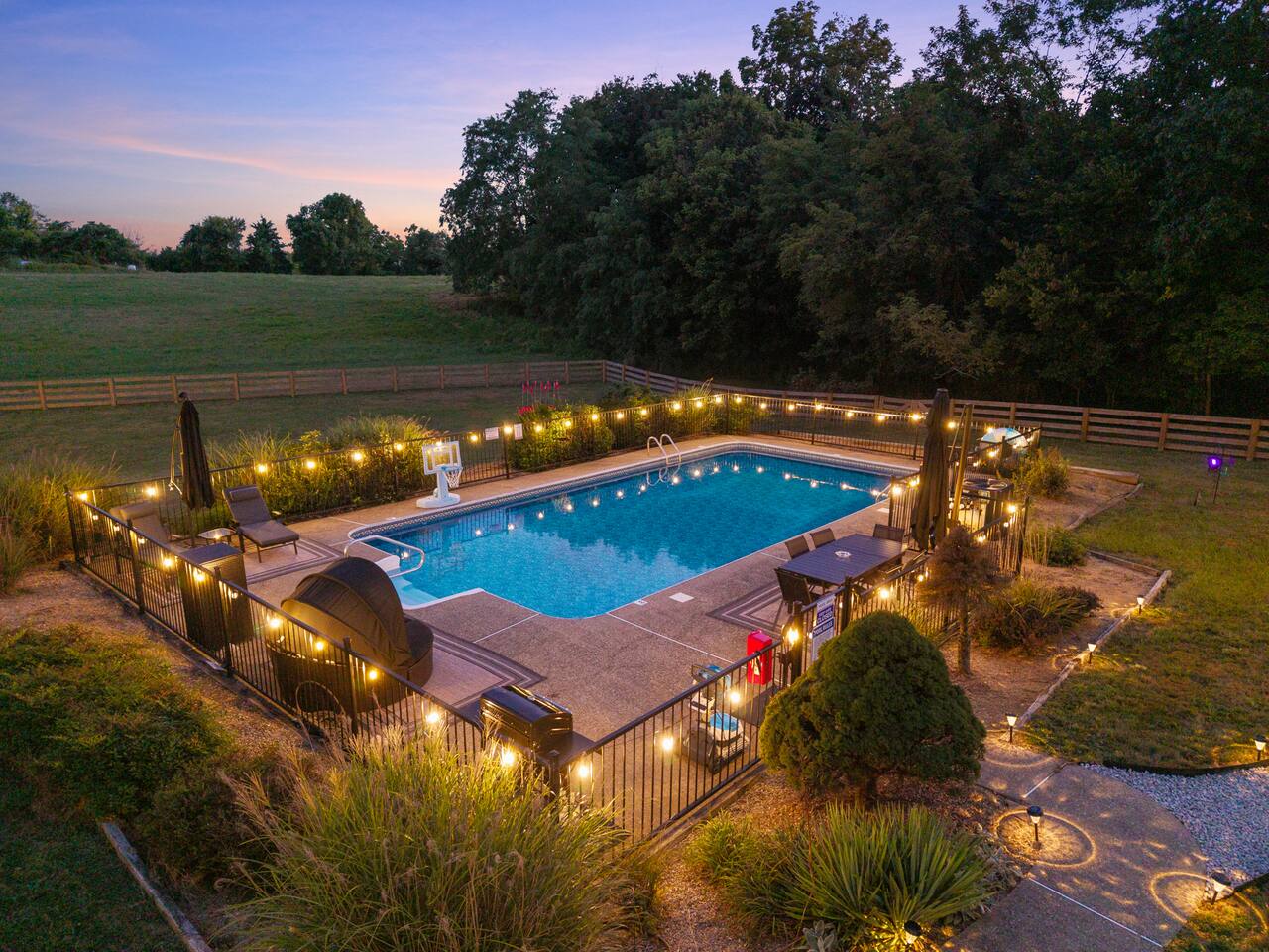 Escape to 19 acres on the Bourbon Trail, between Louisville & Lexington ✔ Sleeps 12: 4 bedrooms, 5 beds and 3.5 bathrooms ✔ Pool, hot tub, and firepit ✔Speakeasy, game room, massage chair, poker table ✔ Dog & family friendly ✔ 15–20 minutes from Buffalo Trace, Whiskey Thief, Bulleit